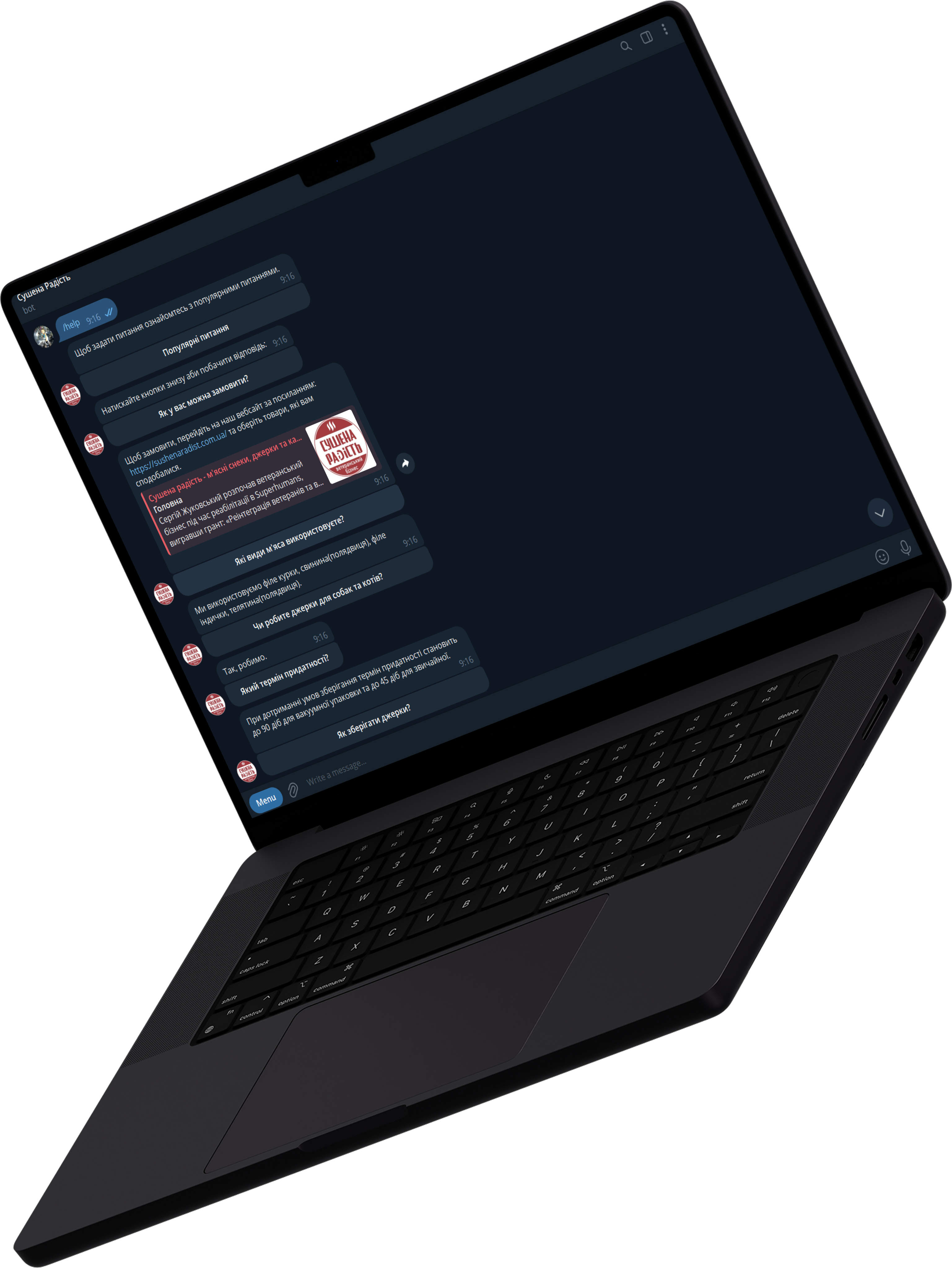 «Сушена Радість» — готовий пакет ботів для автоматизації бізнесу у Telegram. До складу входять: